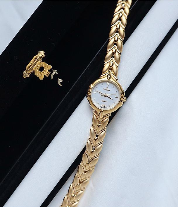 The case is made of brass, treated with vacuum electroplating to coat it in 24K gold, showcasing a luxurious texture. With a dial diameter of 22MM and a thickness of 6MM, the design is both simple and elegant, suitable for various occasions. The jewelry clasp design adds uniqueness and security, allowing you to wear it with confidence.