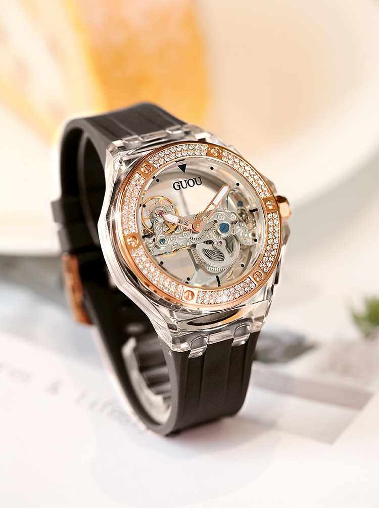 Luxury Moissanite Skeleton Transparent Women's Mechanical Watch